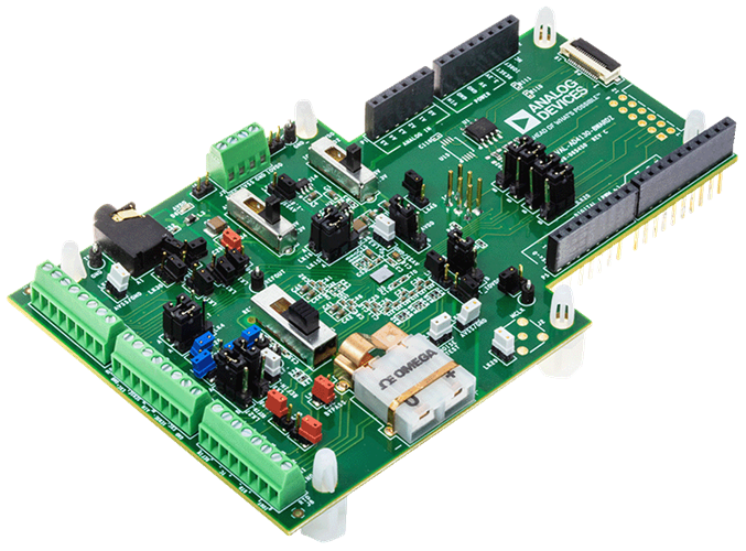 The PMOD compatible evaluation/prototyping board is a small form factor, low cost, low noise, 24-Bit, Sigma-Delta ADC board. When prototyping, this board is used in conjunction with the ADICUP3029 or any other PMOD compatible development platform.